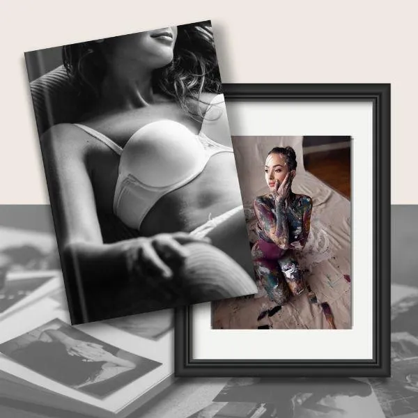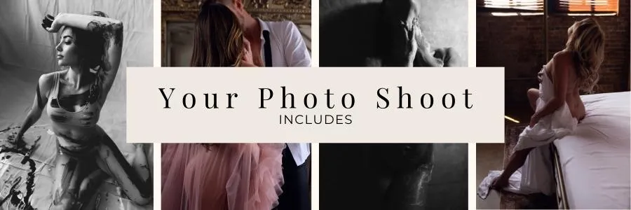 We will spend 1.5 hours creating magic with 3 different sets / outfits. We love to start each set with layers to create variety, to reveal more underneath. Our downtown studio is filled with lots of backdrops, furniture and props to play with.